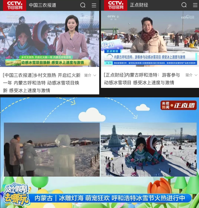 以“冰雪+非遺”為主題的跨年、元旦聯(lián)歡活動還受到中央廣播電視總臺CCTV-1《新聞聯(lián)播》欄目報道。此外,央視《新聞直播間》《朝聞天下》等品牌欄目也對活動予以報道,并在央視新聞客戶端開展專場直播。8次央視新聞聚焦,10余家央級媒體、多家省市級主流媒體及主要商業(yè)平臺發(fā)布相關(guān)報道近千篇,形成多層次宣傳格局,將呼和浩特歡樂冰雪節(jié)推向全國視野。